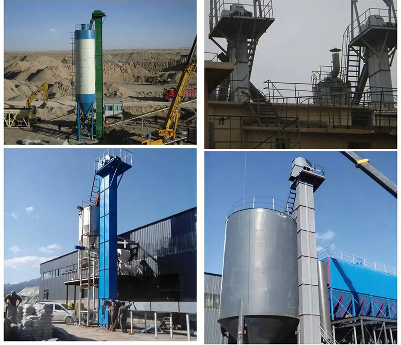 Ring Chain bucket elevators in mining industry: These use ring chains as the traction device, capable of withstanding the impact of large pieces of ore. They have a relatively simple structure, are relatively inexpensive, and can withstand temperatures up to 250℃. They are suitable for powdery, granular, and small-lump materials with little or no abrasiveness.