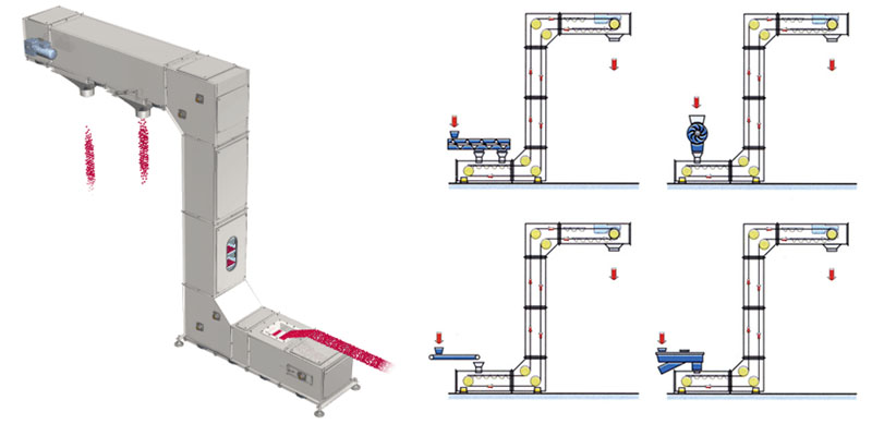 It can be used to gently lift various types of food materials (powders, granules, and lumps) from low to high levels. The price range is $400-$6000.