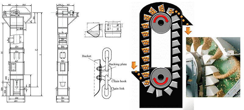 Heavy duty chain bucket elevators, depending on the material being lifted and the lifting capacity, can be divided into single-chain and double-chain types. Generally, chain bucket elevators between NE15 and NE30 models use a single chain, while those between NE50 and NE800 models use a double chain.