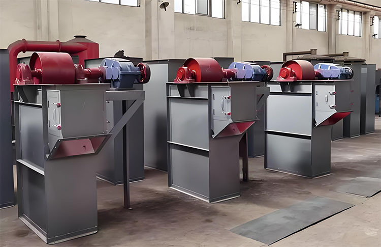 In short, a vertical bucket elevator works by using a bucket connected to a rotating belt or chain to lift materials vertically, providing an efficient and reliable solution for bulk material handling. Its equipment mainly includes a shell, a traction member (belt/chain: driving the bucket for continuous circulation), a hopper (for loading and unloading materials for transportation), a drive wheel (head wheel), a redirecting wheel (tail wheel), a tensioning device, a guide device, a feed port (where materials are fed into the elevator) and a discharge port (where materials are discharged). It is a device that realizes the transportation of materials between different levels.