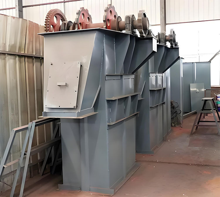 A chain type bucket elevator primarily consists of a traction mechanism (chain/plate chain), a hopper for loading materials, a drive mechanism (which provides power to move the chain and bucket), an inlet, an outlet, and a casing.
