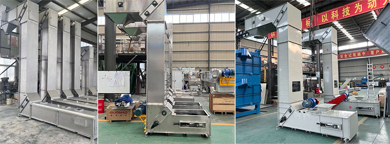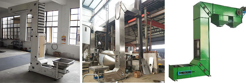 The Z type chain bucket elevator uses a combination of horizontal and vertical conveying to transport powdered, granular, and lumpy materials from a low position to a high position. It can be used in industries such as grain processing, chemicals, building materials, metallurgy, and light industry to transport materials such as grains, feed, plastic granules, fertilizers, soybeans, cement, sand, gravel, ore crushing, and biscuit blanks. It is suitable for materials with low viscosity, good flowability, and no strong corrosiveness or excessively high temperatures. The chain bucket elevator can be connected to vibrating screens, crushers, quantitative feeders, packaging machines, silos, mixers, and other equipment to form a complete material handling production line. It is suitable for practical scenarios such as feed mill pellet transfer, fertilizer plant finished product conveying, and mine coal powder hoisting, improving material transfer efficiency.